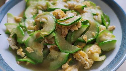 3. 加入鸡蛋:将炒好的鸡蛋倒入锅中,与瓜类一起翻炒。