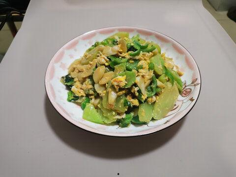 炒好的吃瓜炒鸡蛋,色泽鲜艳,口感清爽,既适合早餐,也适合作为一道下饭菜。你可以将它摆放在漂亮的盘子上,和家人朋友一起分享这份美味。