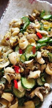 2. 炒制螺片时,火候要大,动作要快,以免螺片炒老了。