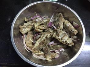 4. 腌制羊肚:将羊肚条放入碗中,加入适量的盐、生抽、老抽、料酒,搅拌均匀,腌制10分钟。