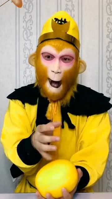 1. 视频开头,孙悟空身穿金甲,手持金箍棒,威风凛凛地出现在镜头前。他一边吃着瓜,一边哈哈大笑,那模样真是可爱极了。